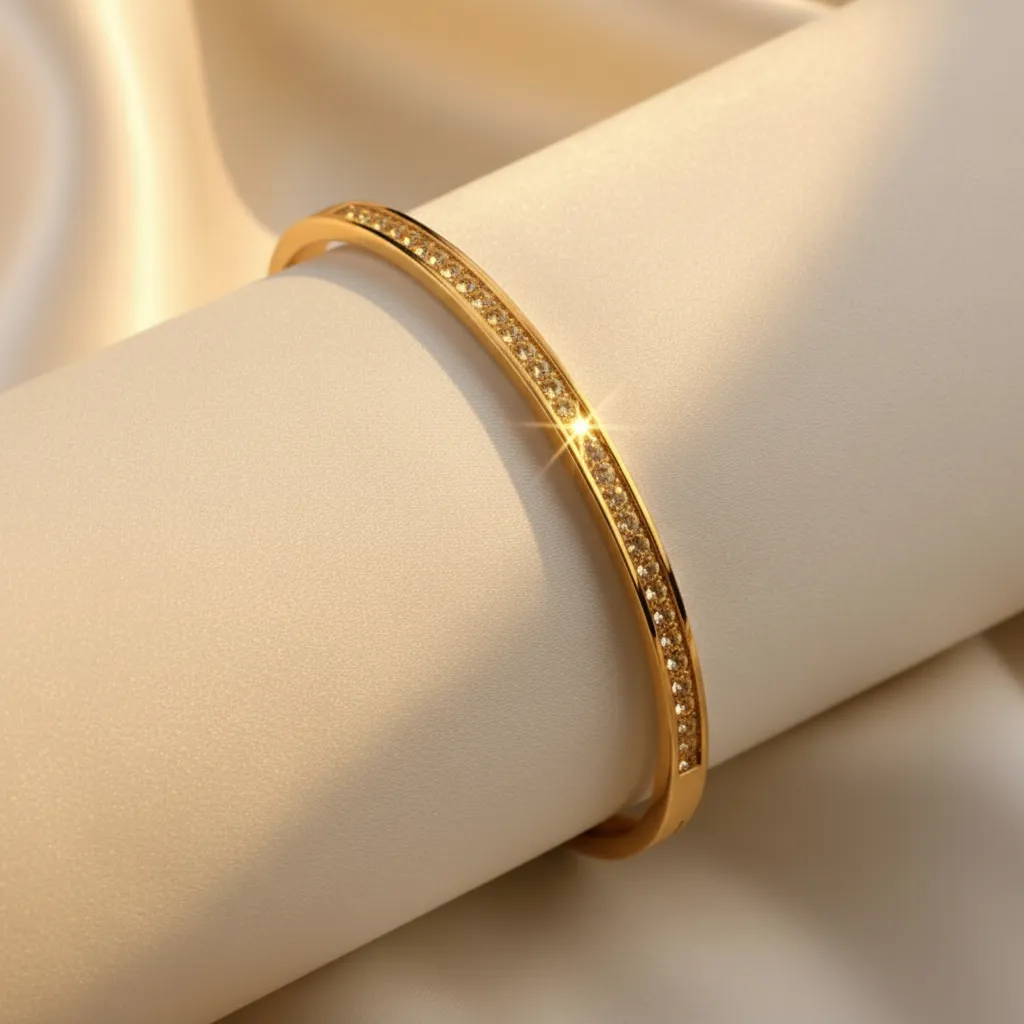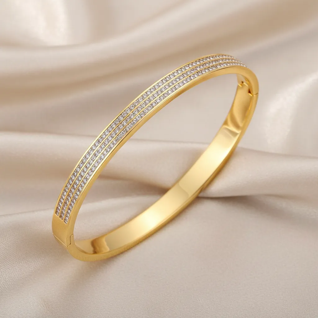 These radiant gold bangles, adorned with a stunning blend of round and tapered baguette diamonds, are designed to capture every glance with effortless elegance. A perfect harmony of timeless luxury and contemporary charm crafted to shimmer beautifully with every movement..
