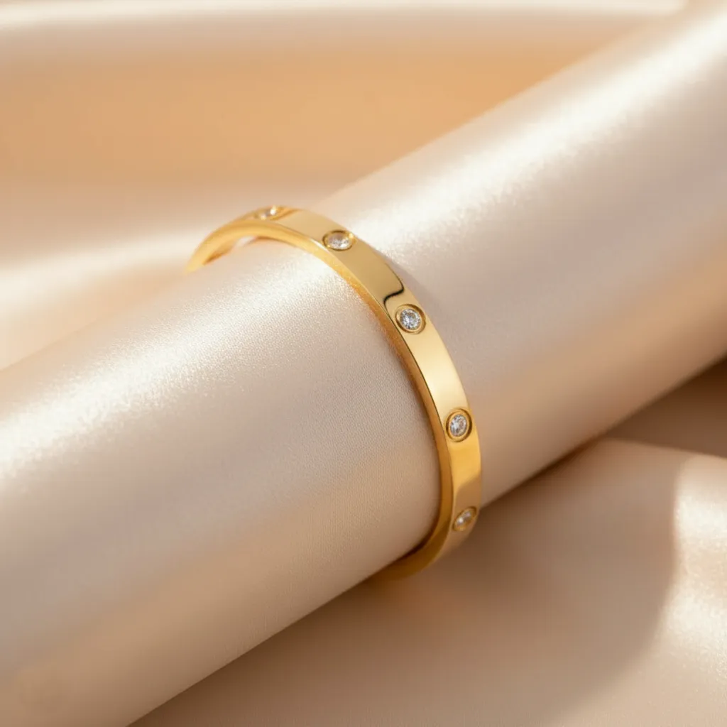 Note: This bangle belongs to our Premium Collection — featuring stainless titanium steel, triple-layer 18K gold plating, and sparkling cubic zirconia accents. Designed for daily wear, water-safe, and crafted for lasting beauty.